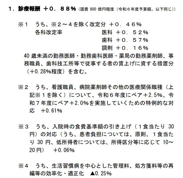 プラス0.88%という改定率から※2.3.4を差し引い「+0.44%」が実質改定率となり、各科に配分されています。