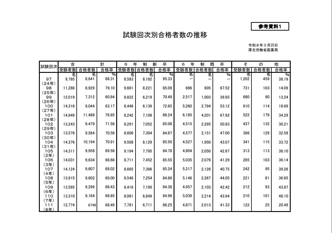 第111回(令和8年) 出願者数 14,261名 / 受験者数 12,774名