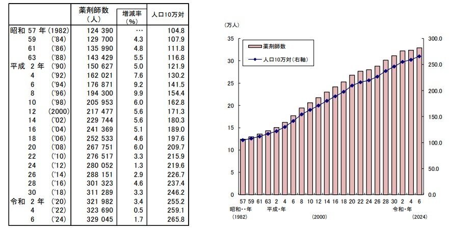 令和に入り、薬剤師の増加率が鈍化しています。